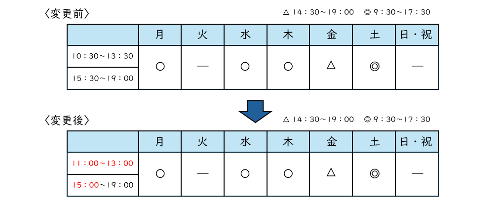 2026年1月より、診療時間を一部変更させていただくことになりました。